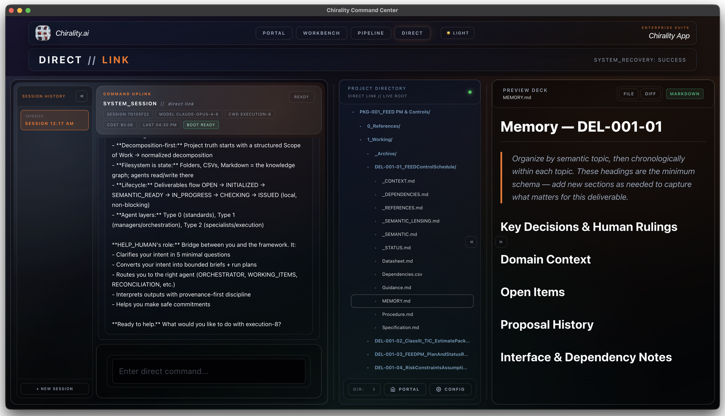 Chirality App for structured project management and execution.